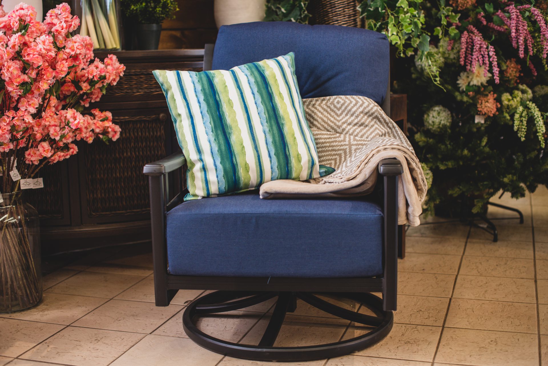 Cushions add comfort and style to your outdoor seating. Many of our cushions are developed with Sunbrella technology; however, it is still recommended to keep them out of harsh environments when not in use to prevent mold or mildew. This can be achieved by moving them indoors, to a storage container, or covering them with a patio furniture cover. If your cushions do get dirty and have removeable covers, follow the manufacturer’s instructions for cleaning and maintenance.