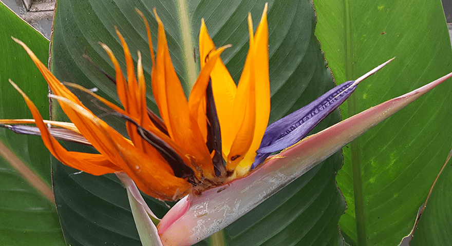 Add height and drama to any garden with its large green leaves and exotic yellow and orange flowers.